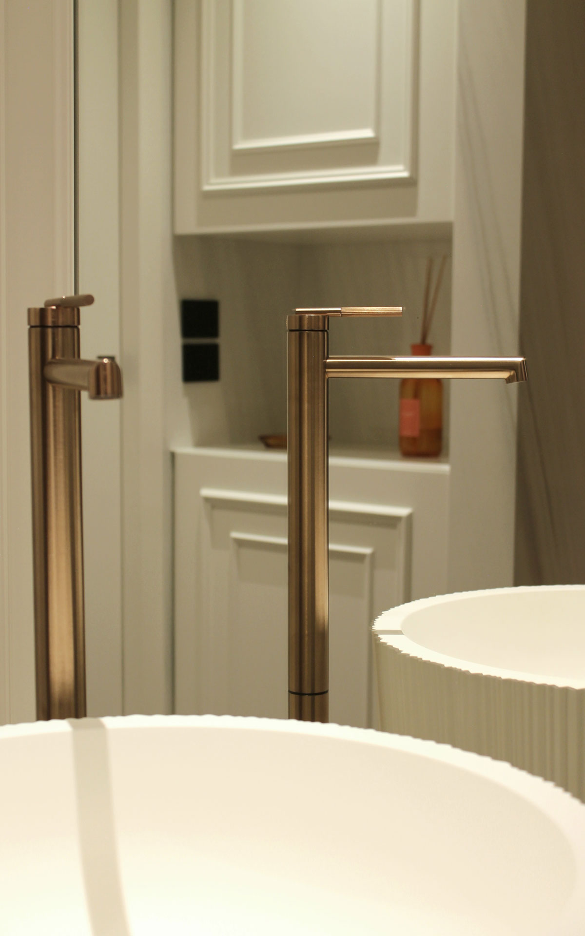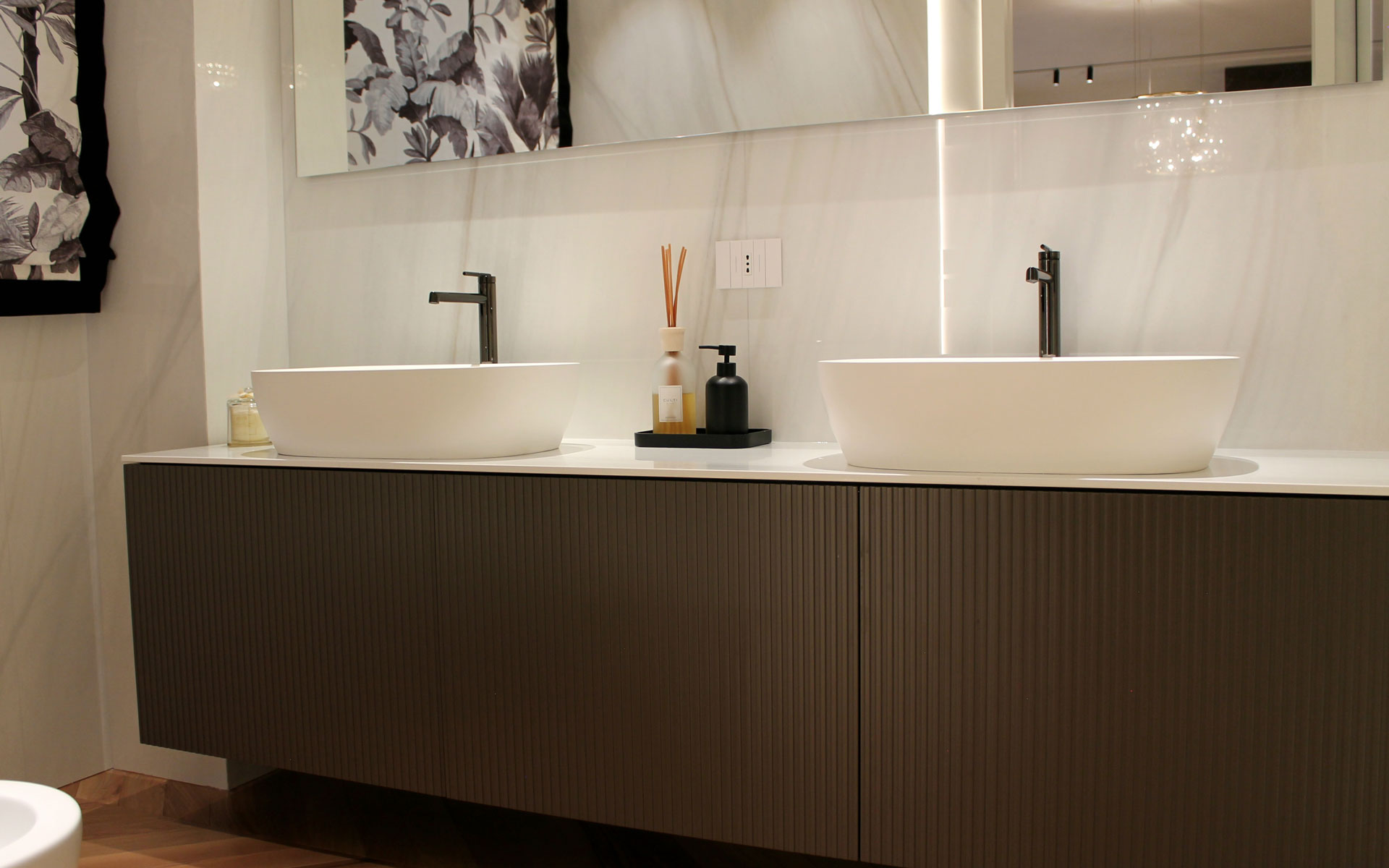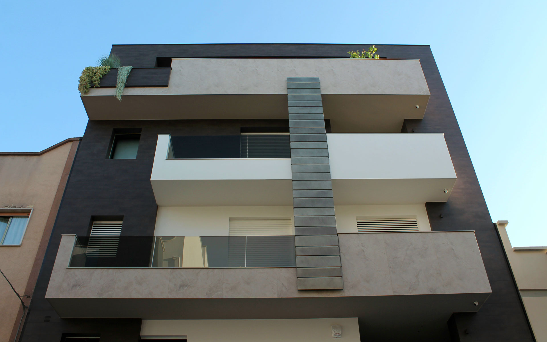All’esterno, il prospetto alterna rivestimenti in gres porcellanato nei toni del tortora e del marrone, mentre una quinta in color platino riprende le sfumature del cancello d’ingresso, conferendo riconoscibilità e misura all’intervento.